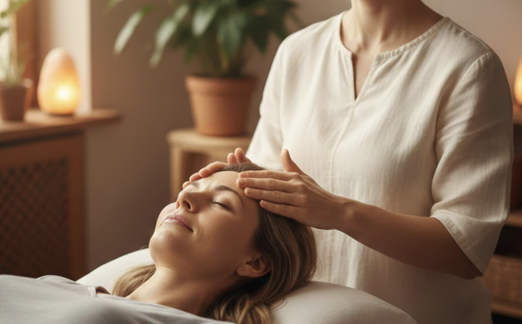 The setting is calm, the energy is nurturing, and the experience is deeply restorative. The Reiki Master creates a serene, nurturing environment designed to help you relax from the moment you arrive. Soft lighting, soothing music, thoughtful décor, and comfortable cushions come together to support a sense of peace and safety. You may lie on a treatment table fully clothed as a practitioner gently places their hands either directly on or slightly above your body.
